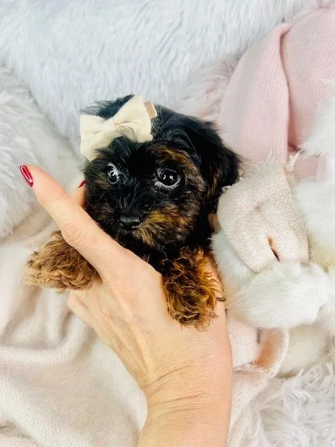 Super pretty Yorkiepoo puppy with a sweet face. Puppy is simply precious with shots and wormings.