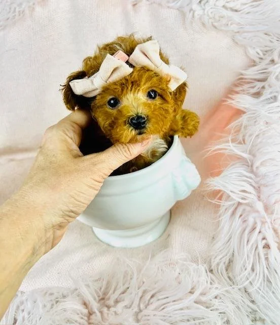 Precious little Poodle with an adorable face. Super small and extremely gorgeous. Red Teacup Poodles are gorgeous. If you are searching for a veyr small Poodle, this is the puppy for you.