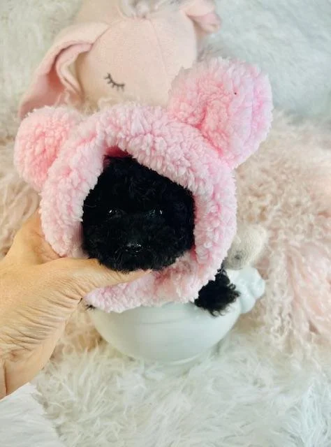 Stunning black teacup Poodle with the cutest face. This little guy has a lovely little face with adorable eyes. He has a nice thick coat with shinny black hair. He is very small and can’t be any cuter. He is a happy puppy that is waiting for a loving family where he can bring lots of joy and happiness for years to come.
