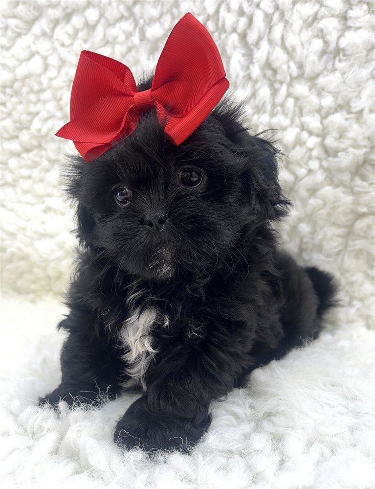 Meet our adorable black Shih Tzu puppy. This furball is as sweet as they come, with a soft, fluffy look that makes everyone smile. This Shih Tzu puppy is not just cute but also incredibly loving.