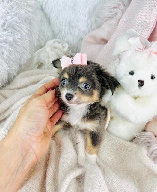 Charo is super cute with an adorable teacup blue Chihuahua. This little baby is very small and has adoralbe ears. She is simply GORGEOUS.
