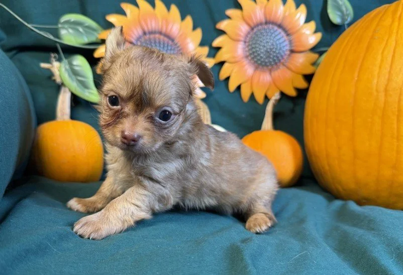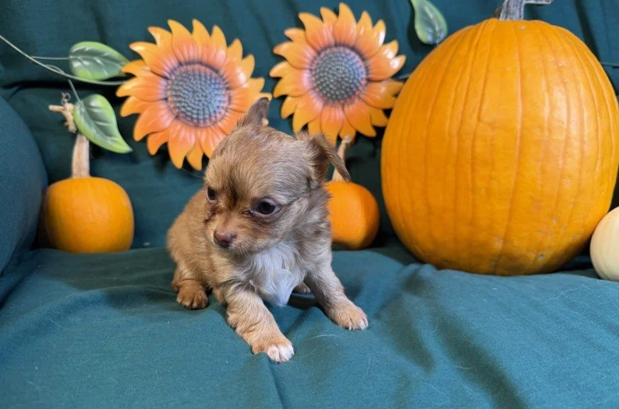 Chihuahuas are great because they are very loving and loyal. They’re small and easy to take care of, making them perfect for apartments or on the go. Even though they are tiny, they have a big, lively personality and are always full of energy. Plus, they don’t need a lot of grooming or exercise, which makes them a wonderful pet for many people. To inquire about this puppy, please click here to contact us directly.