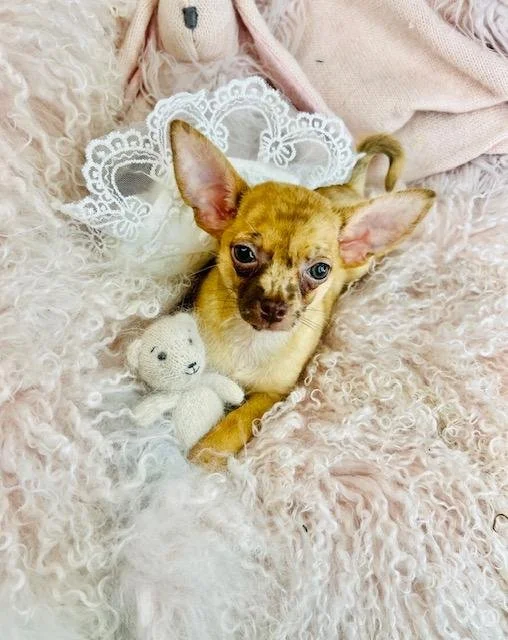 Chris is an adorable merle Chihuahua that has really pretty, and unique markings. He has all his shots and wormings up to date.
