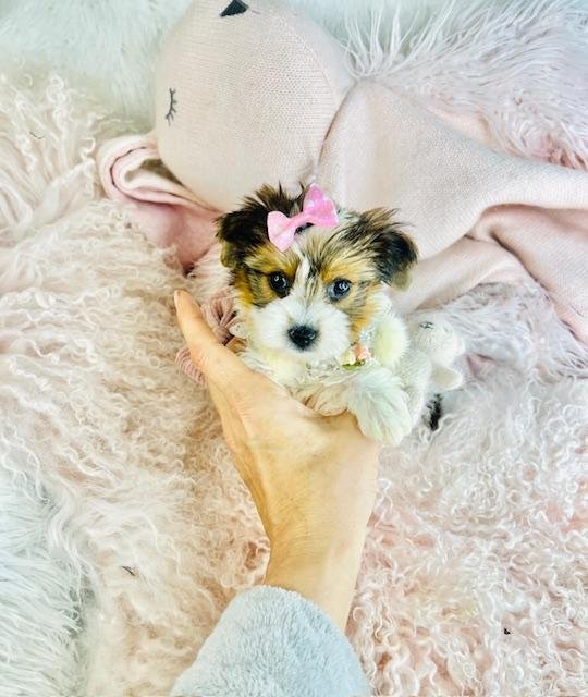 Hi, I am an adorable Biewer Yorkie puppy bursting with cuteness and spunk. I'm a bundle of energy, ready to take on the world with my bouncy enthusiasm and wagging tail. I may be small, but my personality is larger than life. I'm a little firecracker of happiness, always ready for new adventures and endless games of fetch or tug-of-war.